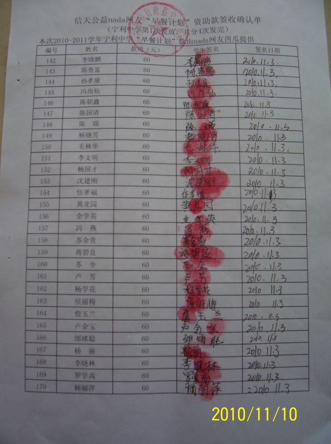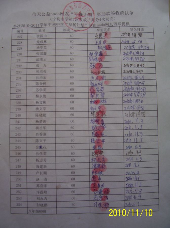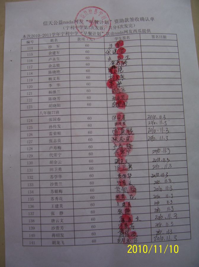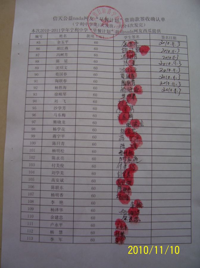 标题: 贫困学生早餐计划-宁利中学和新营盘中学(nada内部认捐)