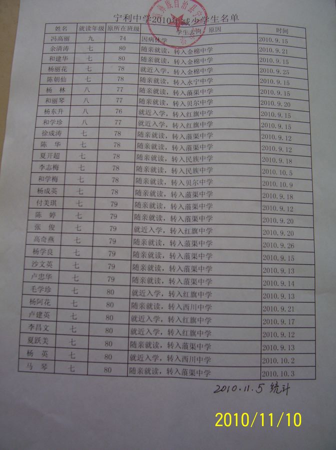说明:原有学生320人,实发291人,另有28名学生转校,1名学生因病休学,特此说明。