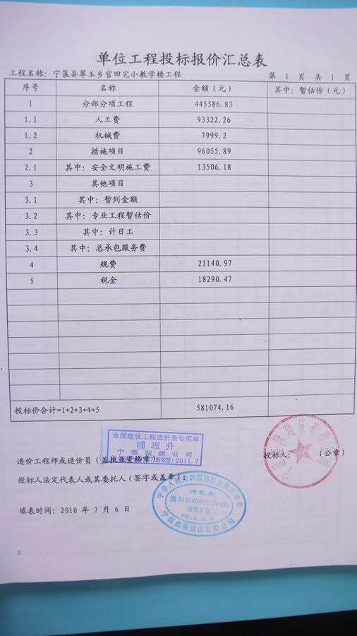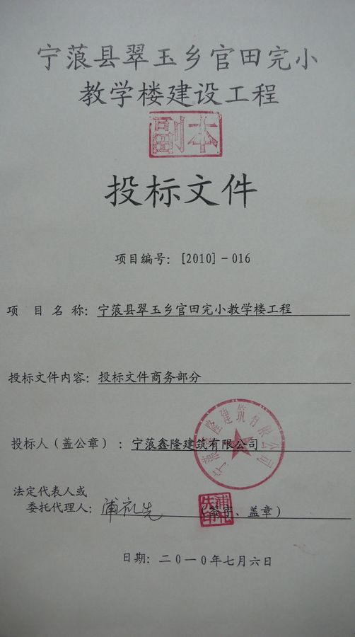 宁蒗县翠玉乡官田完小教学楼建设工程投标文件: