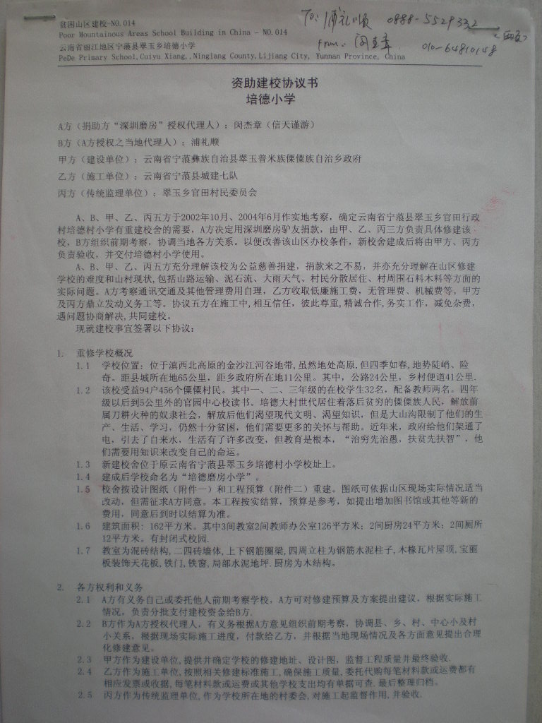 标题: 第14所山区小学: 培德磨房小学修建总结报告