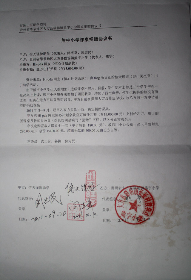 标题: hi-pda网友捐赠贵州山村小学课桌(熊宇小学2011年秋)