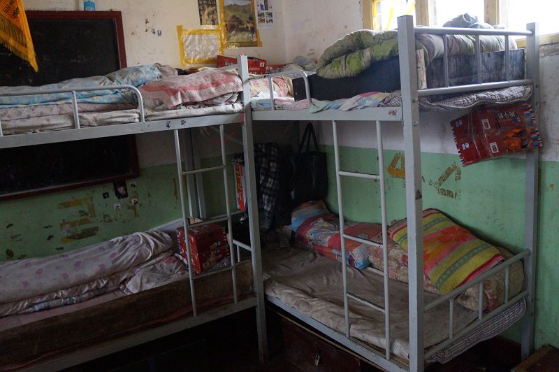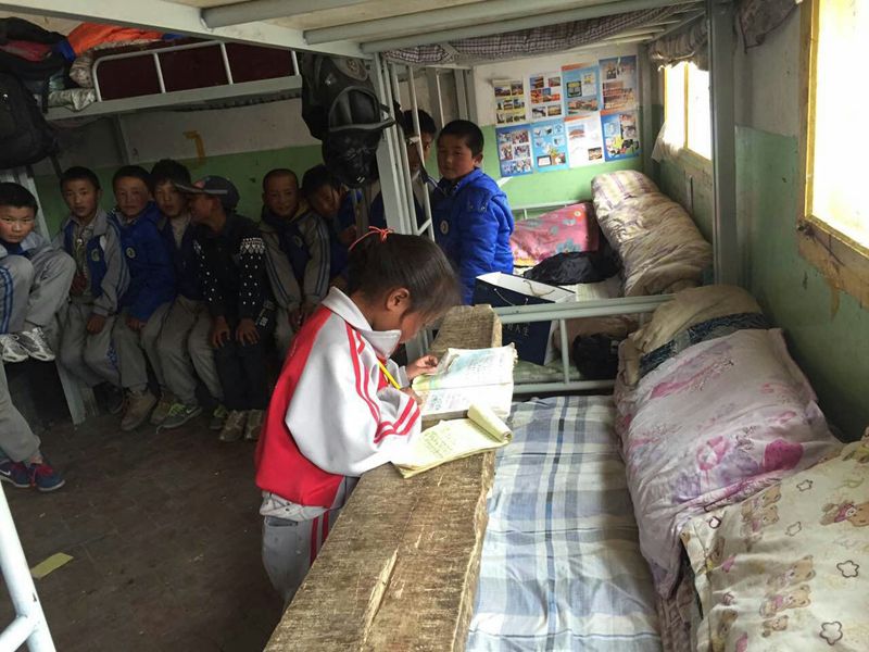 2、吉仓乡中心小学现有学生516人,有上下床90张,平均一个床铺上睡3个小学生,每张上下床睡6个小学生,家里的兄弟姐妹挤在一张窄小的床上,急需床和被褥等寝具。