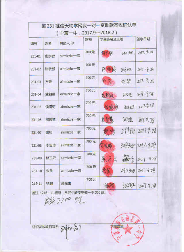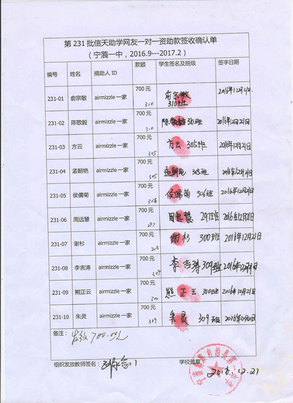 本批第231批10名高中学生,由airmizzle一家捐助。