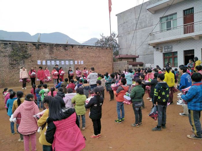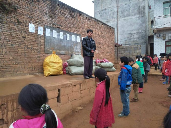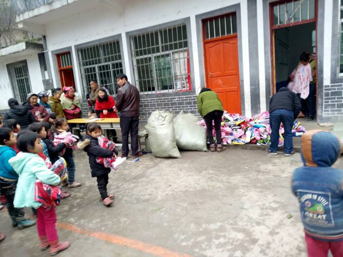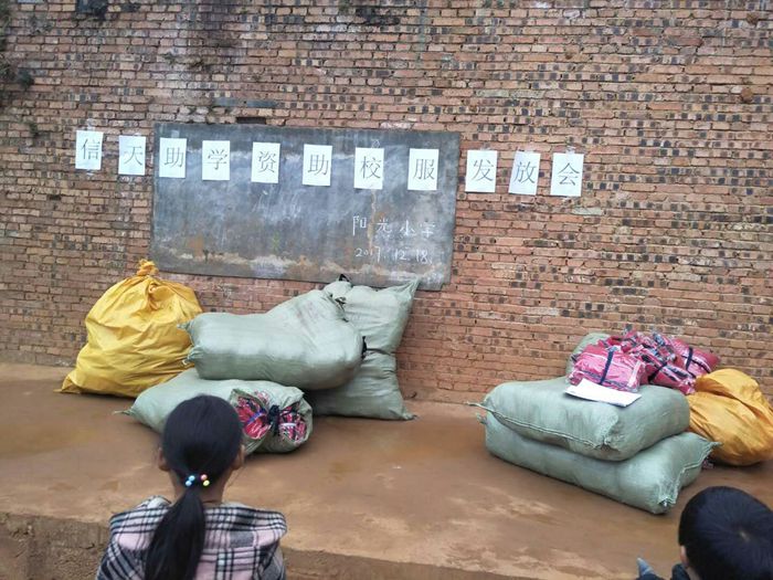 阳光小学分发衣服
