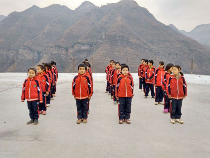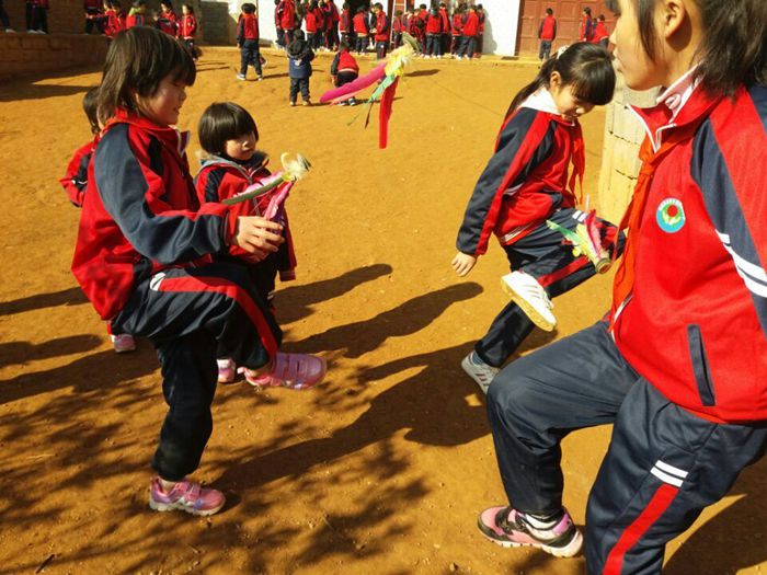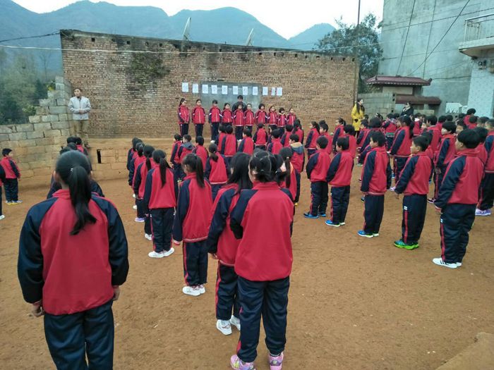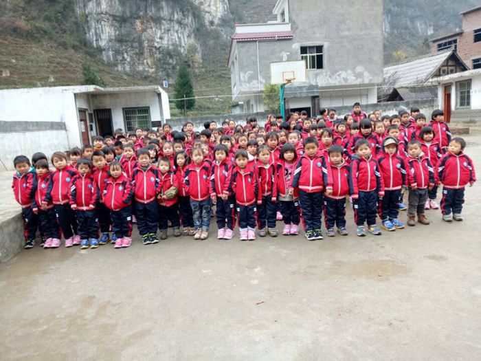 穿上了新校服,孩子们很开心。