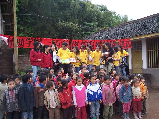 心桥组织也到了民主,天下着大雨,一行12人也冒着雨去了大田小学,进行第100所心桥图书室的挂牌仪式。