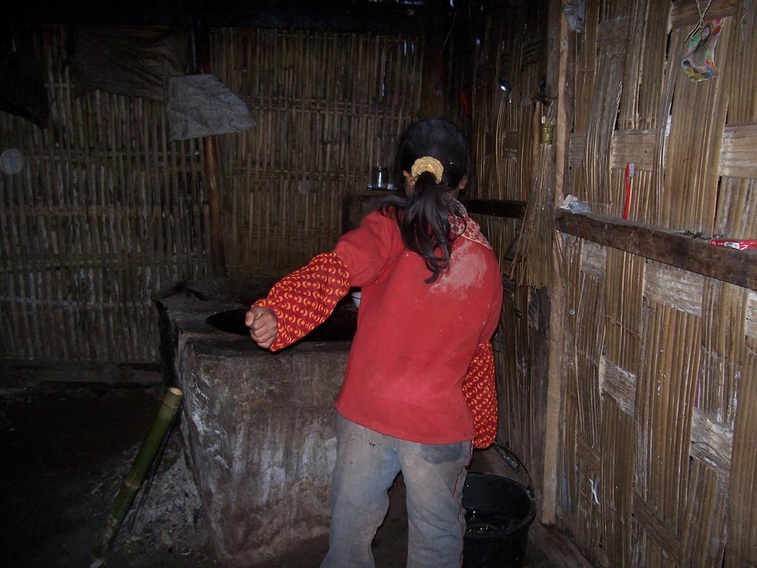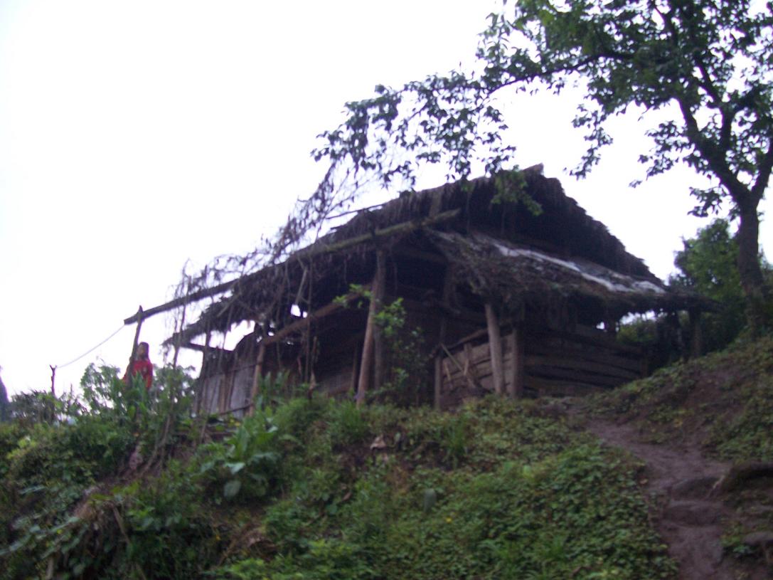 这就是她们的家了,是一座这里已经不多见的茅草顶竹芭墙的房子,总面积不超过30平方米, 屋顶已经多处漏雨,房子也已经有些倾斜。妹妹正站在那里等我们来……