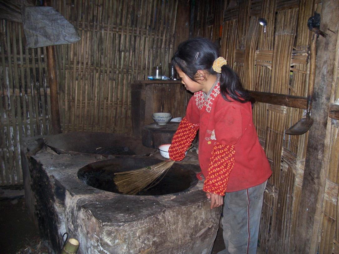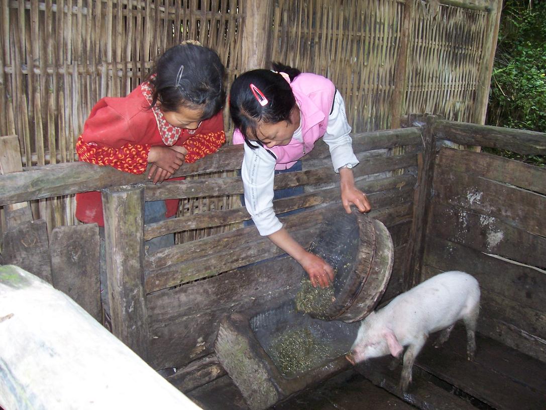 一大早,两姐妹就忙活开了,扫地、刷锅、劈柴、喂猪……