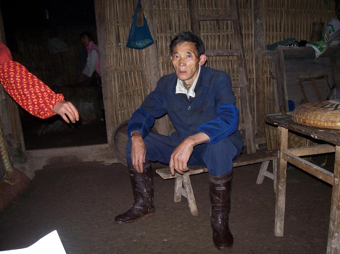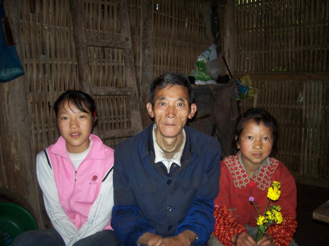 她们的父亲已经59岁,会做点木工活路,这两天是在附近帮助人家做蜂筒(养蜜蜂用的箱子),听到家里有人来,就很快赶了回来。“人老了,走路不行了,累了……”“去给人家做蜂筒,一个才5元钱,我两天做了三个……”“女儿打电话给我,说有人来了,就孩子在家,我就回来了。”“她们的妈妈走了十多年了,再没有音信,不知道去哪里了。我这辈子苦啊……”“这里都通上电了,就我们两家没有装(电),要交400元才给装,还要自己去买线、买电表,我没有钱啊……”“不让孩子去读书也是没有办法的事情,原来学校是收费的,我差200元交不上,老师天天跟着我要,我就只好让孩子回来了……”“地里产的粮食不够吃,现在家里吃的米是民政救济的,有时候还给些救济款……”“我挣不到钱,去年养的猪长到100多斤,死掉了,今年又养了个小猪……”