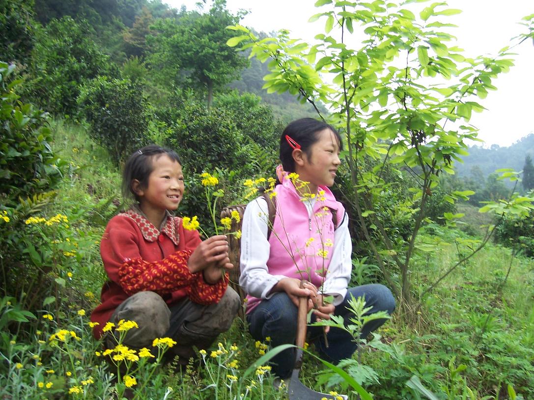 吃过饭,姐妹俩就去打猪草、采山茶,还带我去看了她们的秘密——一个受到她们精心保护的雀儿巢和里面的5个雀儿蛋……