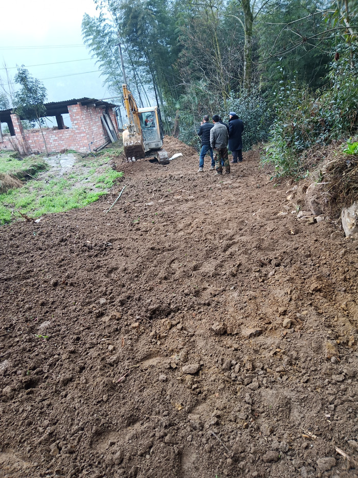2、新挖及加宽路硬化:长约100米,宽1.5米,混凝土厚度0.18米。先用碎石调平(平均厚度0.08m),再硬化。