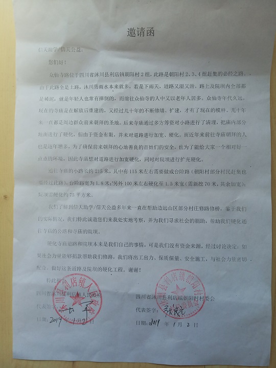 众仙寺位于四川省沐川县利店镇朝阳村2组。该寺庙年代久远,现在的寺庙是在解放后重建的,又经过几十年的不断修缮、扩建,才有了现在的模样。几十年来一直都是周边群众前来朝拜的圣地。在寺庙重建初期,由于通往寺庙的路全是土路,沐川县雨水本来就多,若是下雨天,道路又湿又滑,路上及院坝内全部都是稀泥,就是年轻人也常有摔倒的,而前往寺庙的人中又以老年人居多。后来寺庙通过多方筹资对小路进行了清理,把庙内部分地面进行了硬化,但由于资金有限,并未对道路进行加宽、硬化。而近年来前往寺庙朝拜的人也是逐年增多,为了确保前来朝拜的心地善良的百姓们的安全,也为了能给大家一个相对好一点的环境,因此计划对道路进行加宽硬化,同时对院坝进行扩充硬化。
