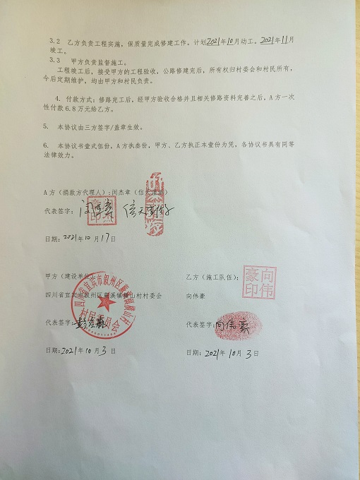 捐助修路协议书