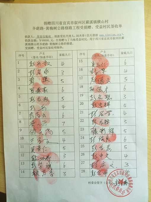 受益村民签字单
