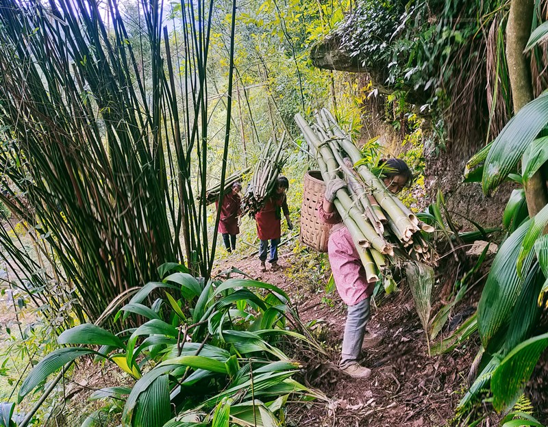 这里世代不通公路,村民靠肩扛背驮,背运东西,他们渴望修路。