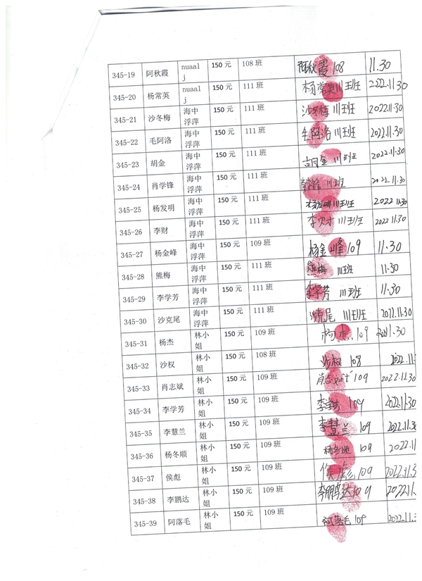 345-34---李学芳---女---彝族---109班---林小姐