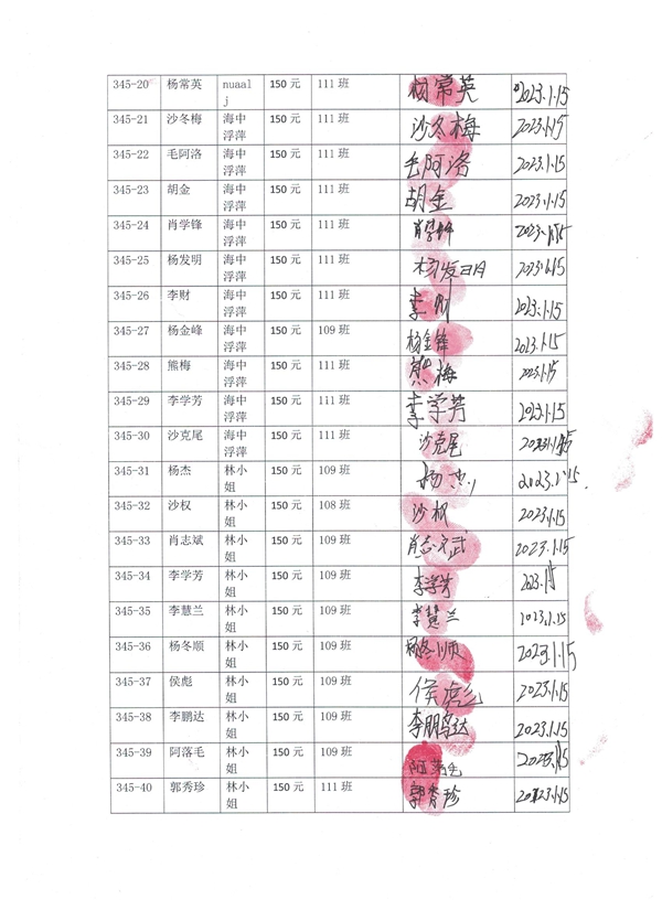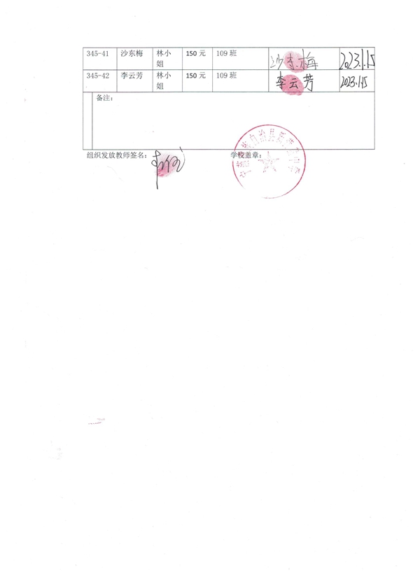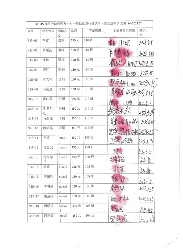 第345批新营盘中学(2023年3月到2023年7月)受助学生签收单