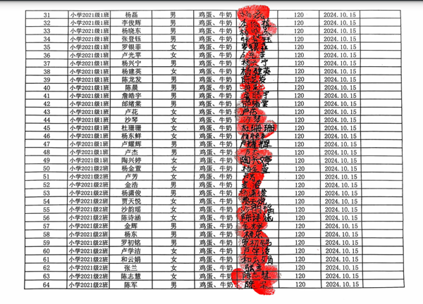 宁利中心完小,2024-2025年上学期早餐计划第一次发款签收单