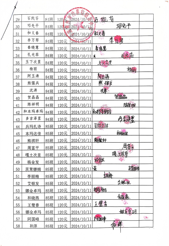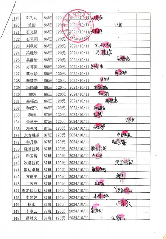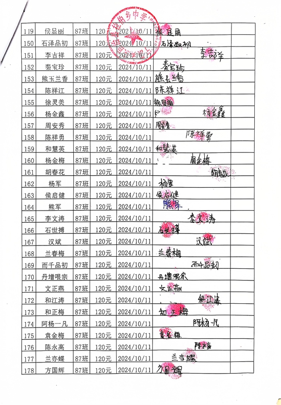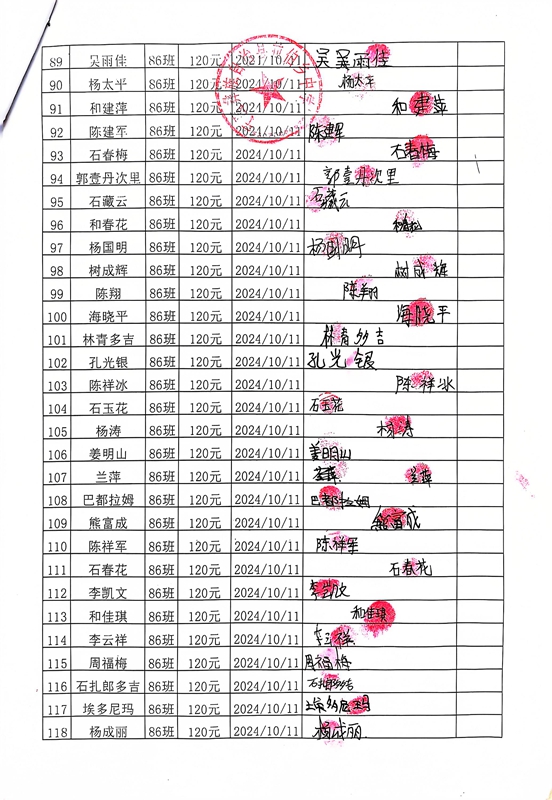 拉伯中学,2024-2025年上学期早餐计划第一次发款签收单
