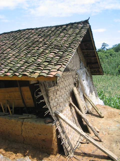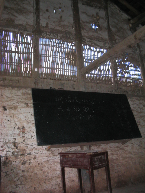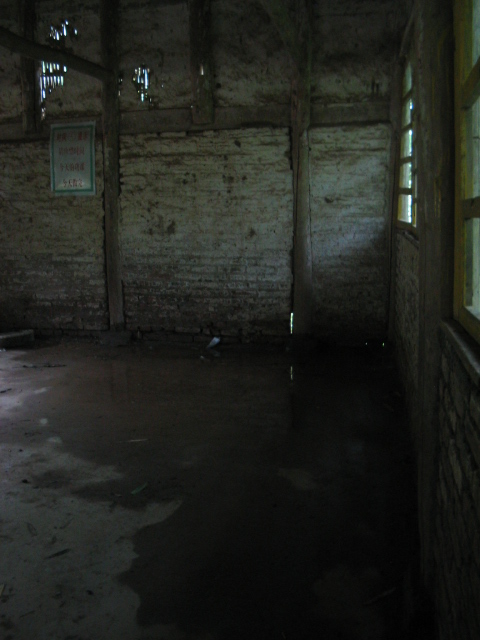 第一所是处于三岔口附近高山上的一个教学点,原来是民房,被洪水冲垮了一半,现在是剩下的部分……