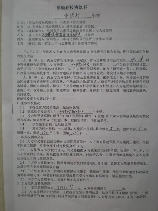 三、《资助建校协议书》及附件《图纸》和《工程预算单 》