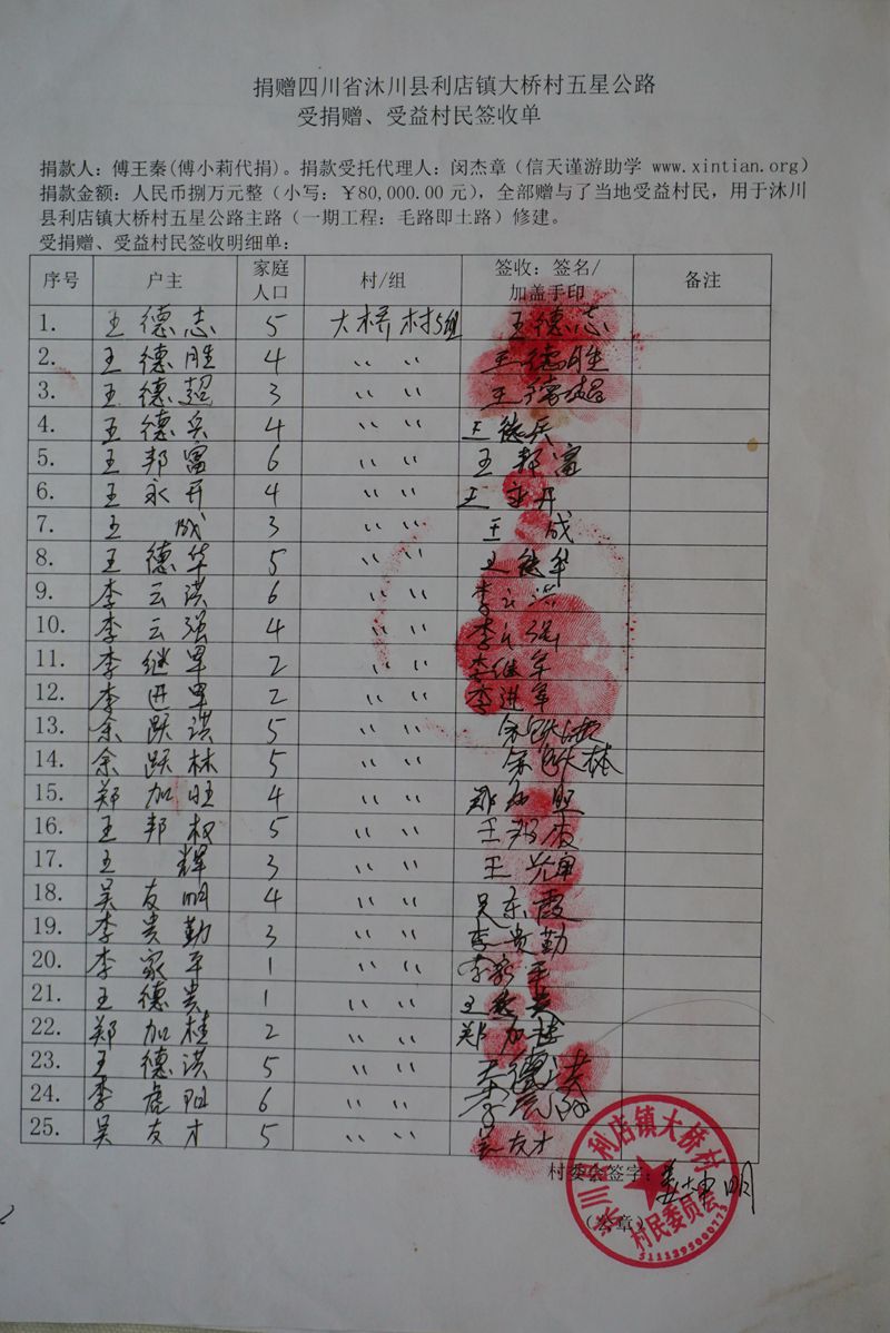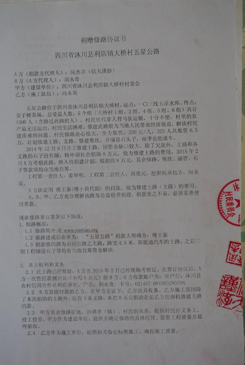 2015年5月19日,傅王秦捐建此路,傅小莉代捐代汇款。