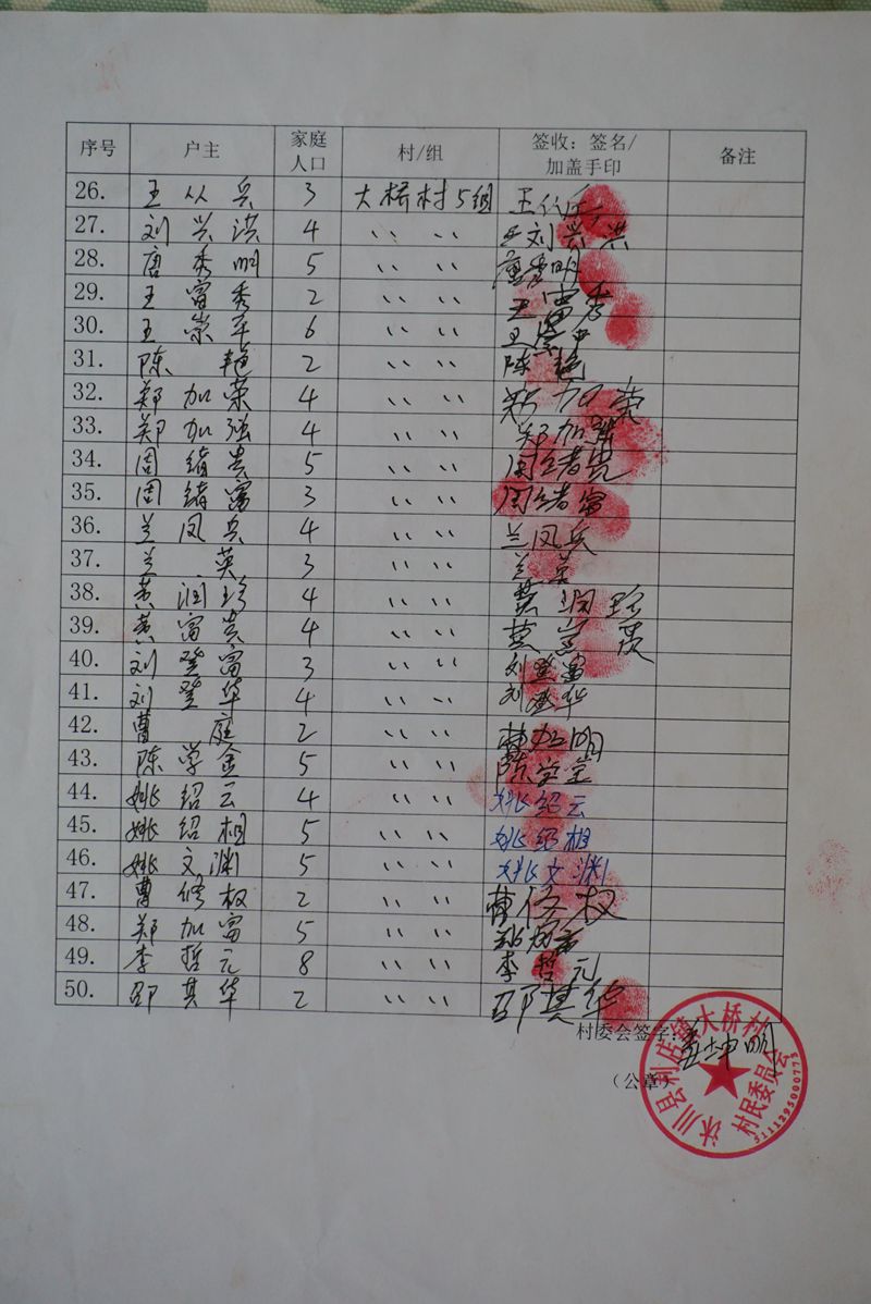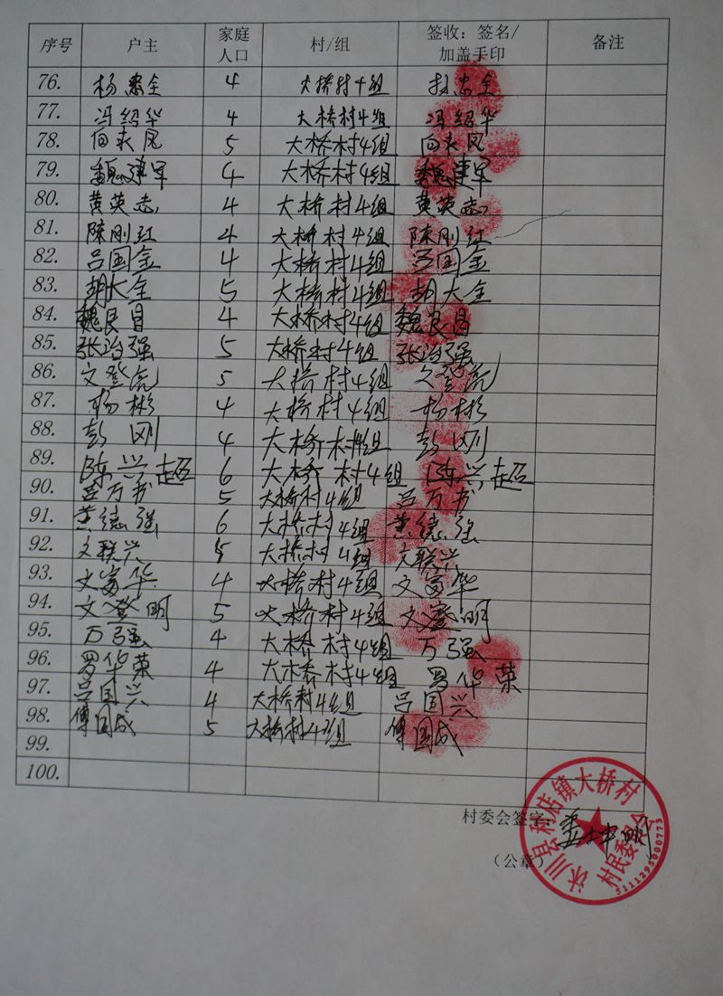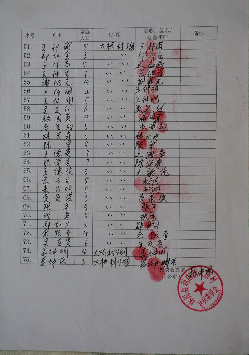受益村民签收单