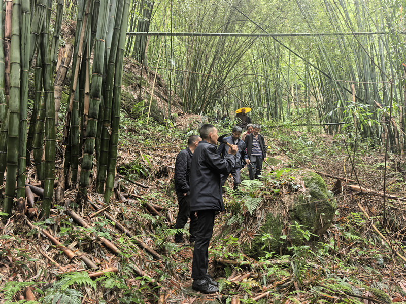 勘察路线,计划把这里的羊肠小道扩宽修建成能跑四轮车的乡间土质公路。