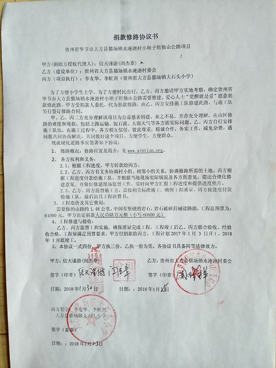 捐助修路协议书