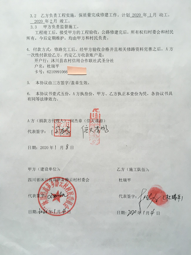 捐助修路协议书