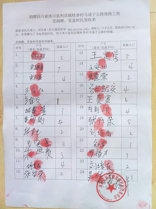 受益村民签字单