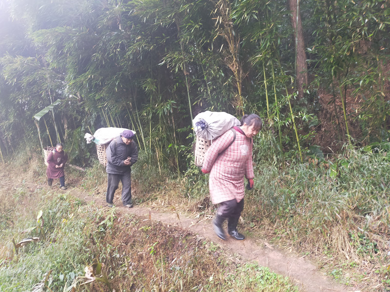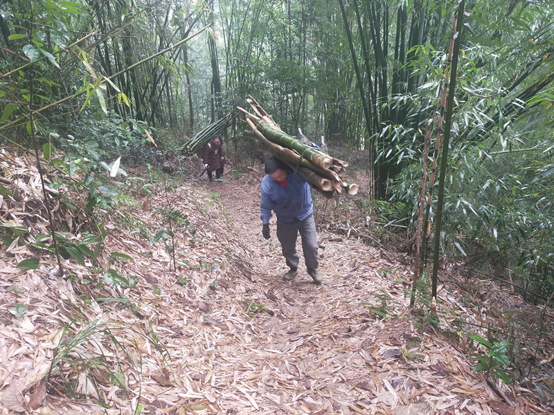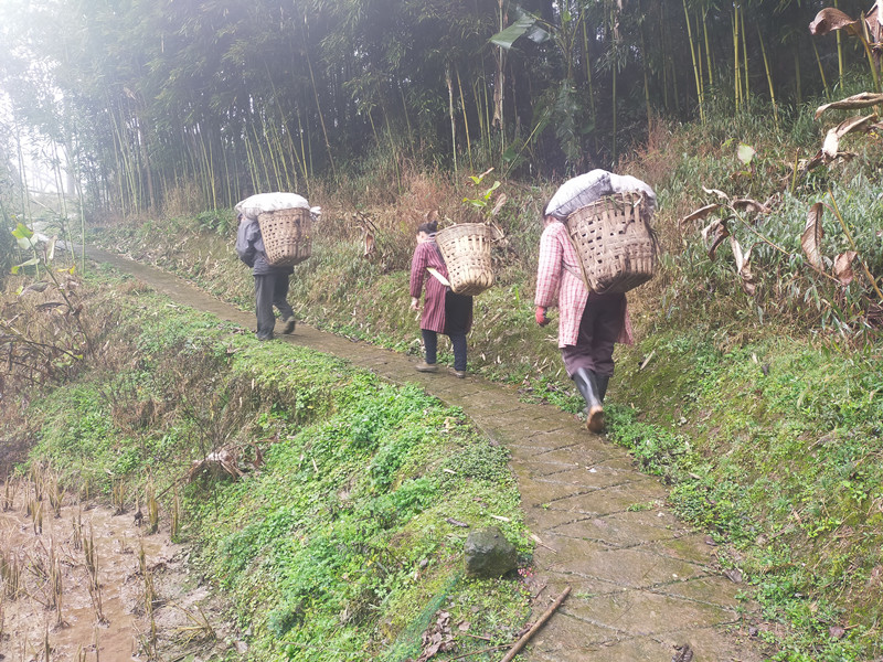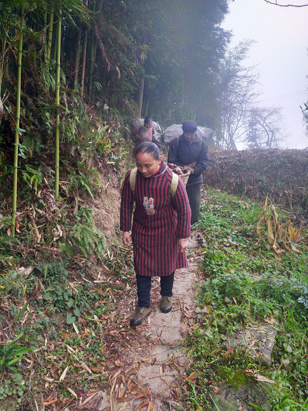 村民劳动,修好路之后,就不用肩扛背驮了,可以用四轮车运输了。