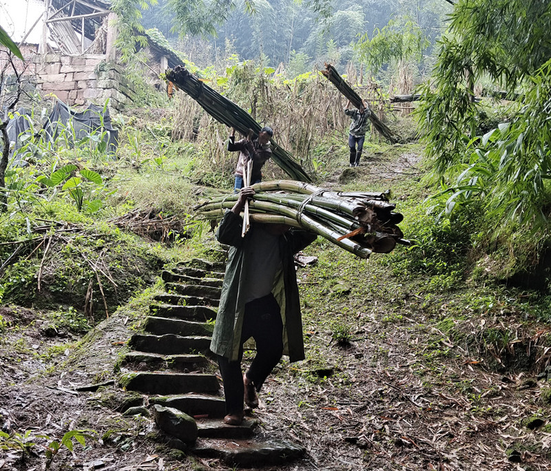 村民劳动,他们渴望修路,修一条能跑四轮车的路,这样就不用肩扛背驮了。