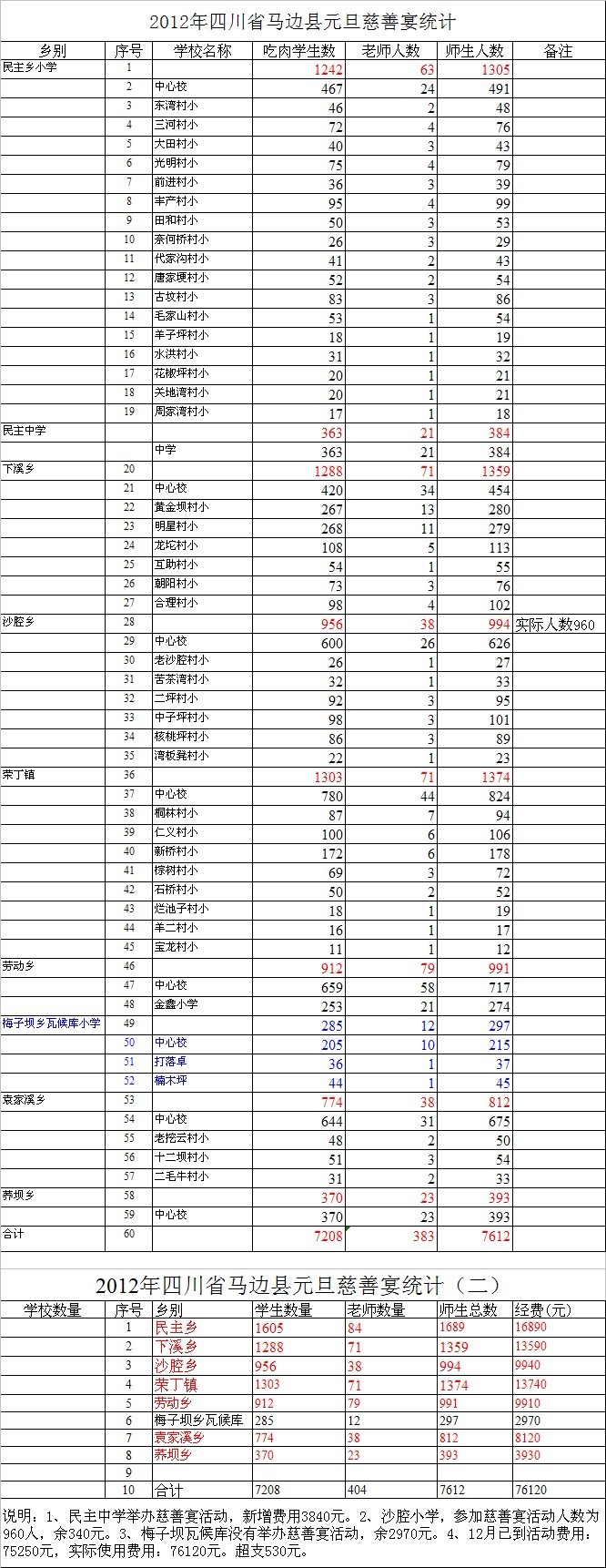 两乡共计支出:26640元,超支780元由滋根乡村教育自理。