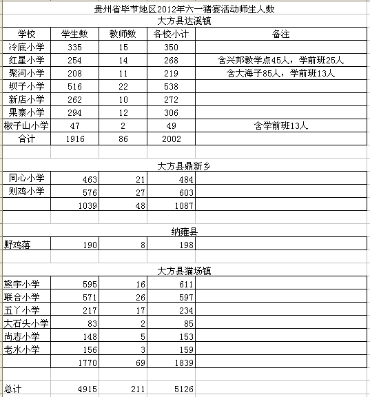 (三)贵州省毕节地区: