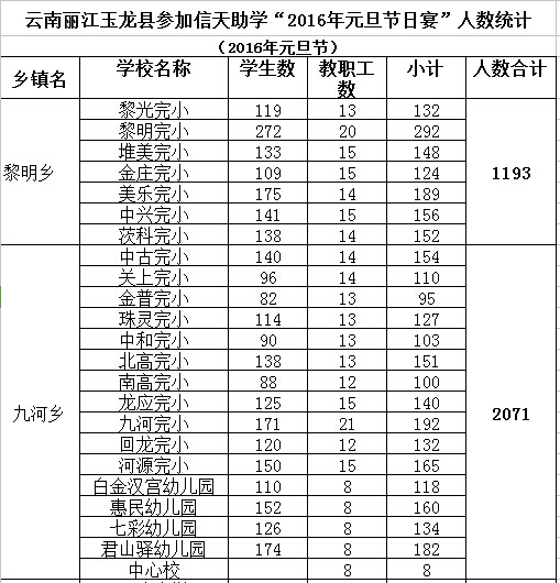 本次约5.9万名师生参加过年节日宴活动,本次活动的前后组织、联络通讯、安排协调、资料调查、打印复印费、走访车费、油费均由参加活动的志愿团队或志愿者个人自行承担,不占用大家的捐款。
