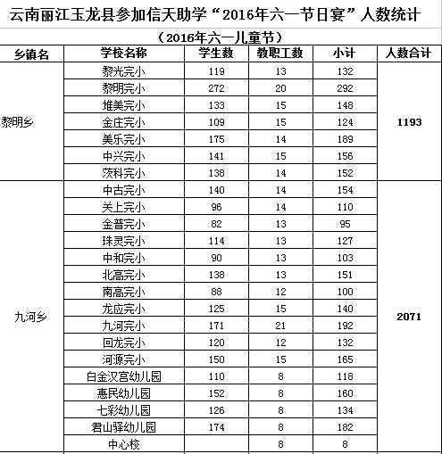 以上总合计:宁蒗县参加2016年六一节日宴会人数为:42028人。