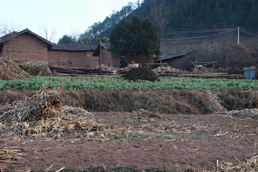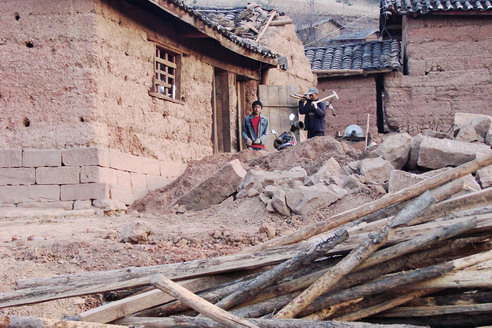 不远处四五个泥孩子藏身于一辆破旧的农用车斗里,看到我们注意他们,立刻象小动物一样猫进车斗里一声不吭,我想他们在几年之后也许会是我们小学的使用者,于是端起相机,径直朝他们走去。他们突然哇哇大哭了起来,让我非常尴尬,也终于打破了村子的宁静,不断有人出来默默看着我们。