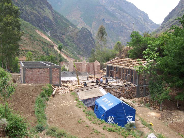 学校正在修建过程中,深圳磨房的远方给我打电话商量去云南走访学校的事情,5月1日他才给我联系,2号就订票出发了,当时打底河小学正是紧张施工中,远方和浦礼顺等人前去学校考察并拍摄了照片,学校已经在上梁了。