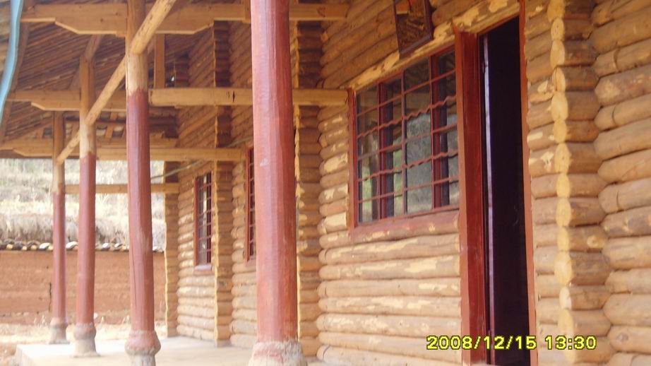 修建好的白岔河小学:木楞房,最抗震的房子,木头节节环扣,相互扯连,最为抗震。