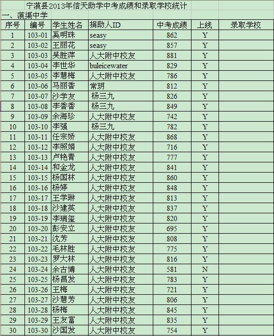 » 2013年受助初中生毕业中考成绩(2013年8月7日更新)