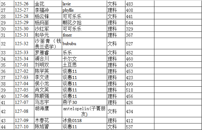 理科:本科第一批540,第二批475,第三批446(彝文专业本科337),专科180。