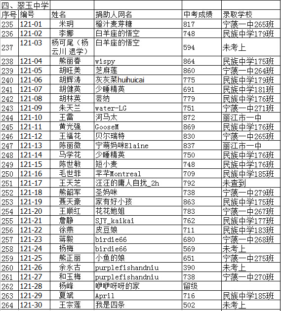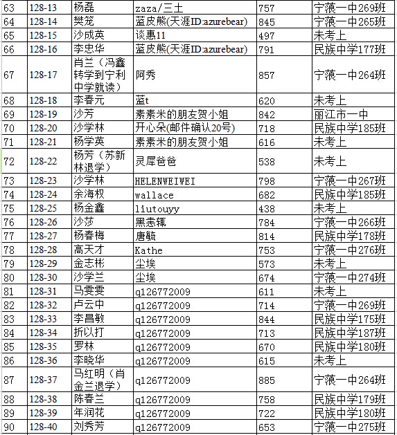 181-07-------128-26------沙莎------------黑恚辄----------784-----宁蒗一中266班