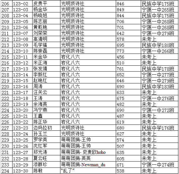 181-35----124-46-----杨秋月-------兰佩紫------857-----宁蒗一中264班