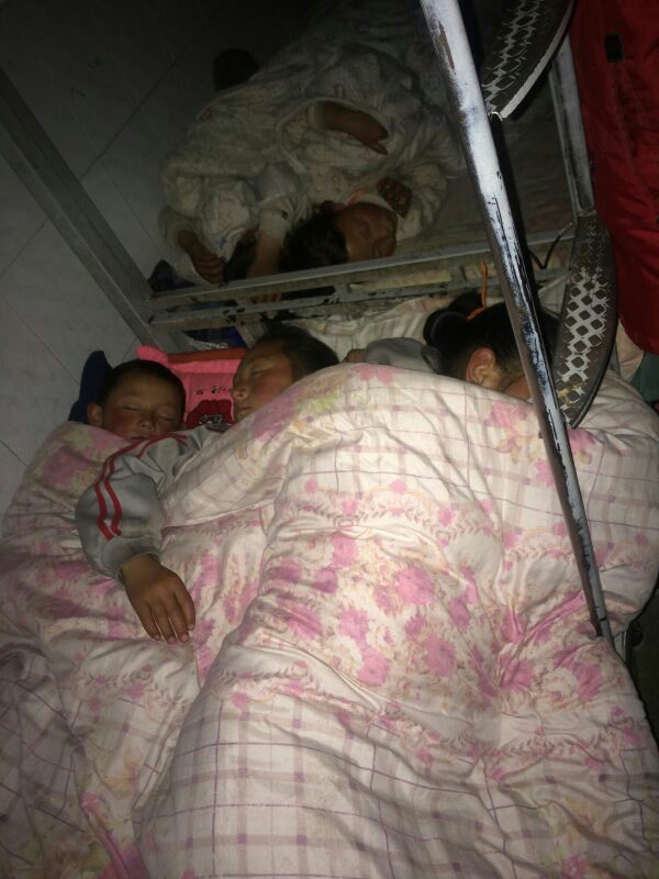 一个床铺上睡3个小学生,每张上下床睡6个小学生,家里的兄弟姐妹挤在一张窄小的床上,急需床和被褥等寝具。