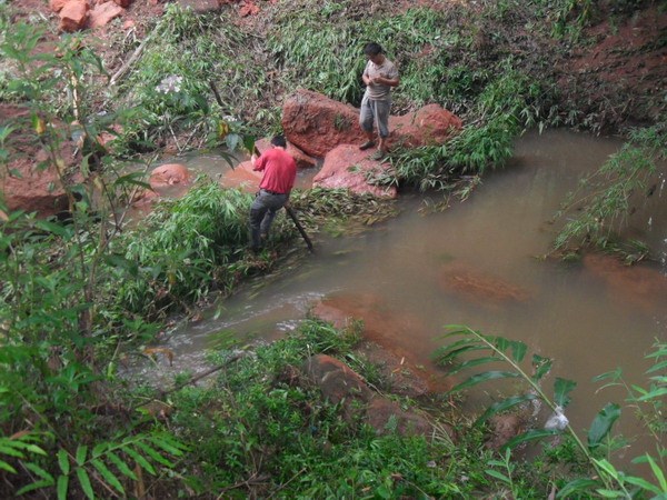 正在清除阻挡水流的碎石