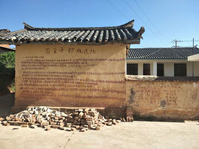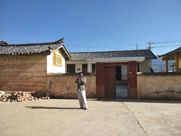 爬上土路,进村第一眼就能见到我们的马金子村小啦,铁将军把门,左边的小屋就是教师宿舍,右边的小瓦房其实是厕所,小院里有三间宽敞明亮的教室.