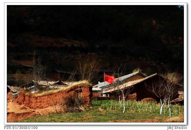 017-村口老浦,土墙后掩饰不住的是学校的国旗.jpg