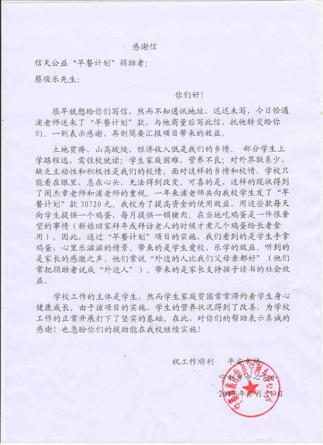 标题: 2012.9-2013.7早餐计划-宁利中心小学(蔡俊乐捐)
