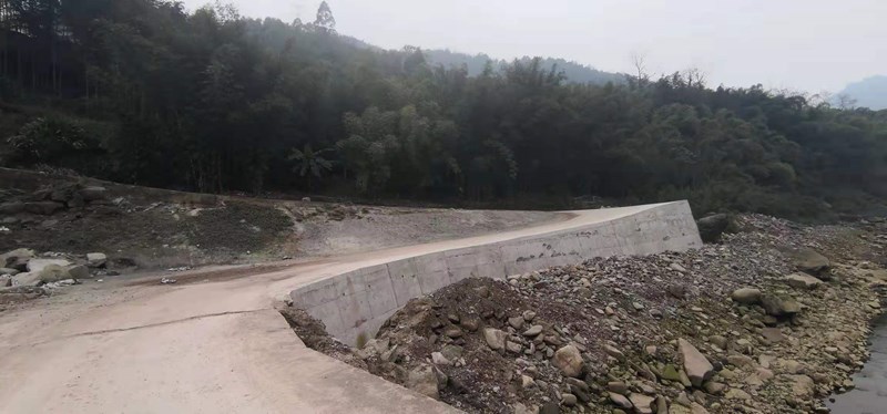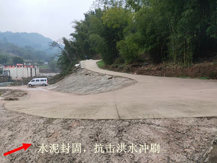受到特大洪水冲洗,河堤重新加固维护,村里向上级政府申请维护。